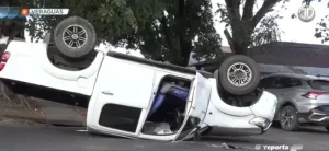 Enfermera pierde el control de su vehículo y se vuelca en Santiago.