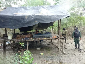 MiAmbiente desmantela campamento ilegal de tala y quema de mangle rojo.
